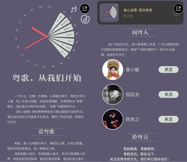 同时,为了让“粤歌”这枝岭南文化的新芽被更多人看到与听到,广东拙见文化、曾小敏粤剧工作室、广州大剧院还跨界联合酷狗音乐,将这些粤歌上线酷狗,并共同推出“粤歌,从我们开始”为主题的粤歌企划专题及歌单,通过互联网助力粤歌传扬。