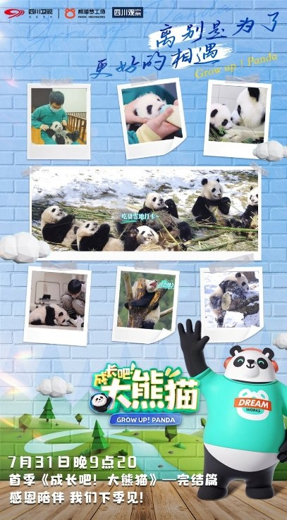 7月31日晚21:20,四川卫视《成长吧!大熊猫》迎来首季最后一期播出,大熊猫新生宝宝的陪伴之旅圆满收官。随着新一年繁育季的开始,绣球、怡畅陆续带着他们的孩子搬出了繁育园,怡畅和双胞胎宝宝离开了饲养员,去到了两百公里以外的碧峰峡基地,迎来了他们的新“奶爸”。熊猫宝宝告别了节目,将迎来属于自己的新生活。