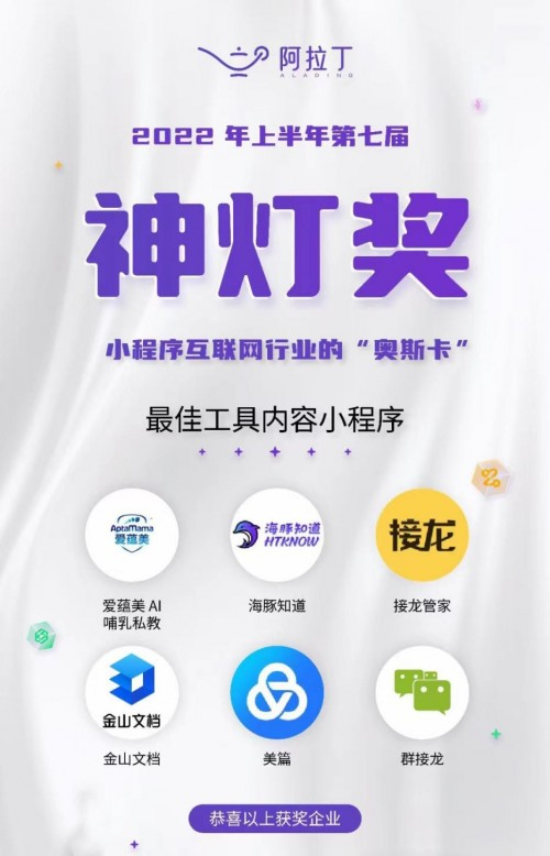 阿拉丁神灯奖作为专门为中国小程序行业生态打造的奖项,始终坚持以创新、数据、增长、流量、探索为闭环,树立了行业强有力的风向标。表彰为各行业做出突出贡献的小程序平台及品牌方;致力于为时代挑选极具前沿、全球视野和社会责任感的企业,推动以小程序为基石的数字化变革,促进中国小程序数字生态的创新与发展。被誉为中国小程序行业的“奥斯卡”。截至今年已成功举办七届,累计有超过350万小程序参与评选。
