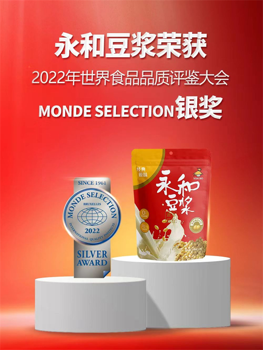 永和豆浆用好原料、好工艺、好配方努力沉淀出一杯好豆浆,用40年不变的匠心品质尽心守护每一位消费者的营养健康。今年永和豆浆经典原味豆浆粉350g更是一举斩获了国际食品品质评鉴大会银奖,用国际品质对“一杯好豆浆”做出了新定义、新标准。