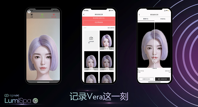 通过物联技术的加持,在大数据和专利算法的帮助下,用户还可以自拍打卡,检测皮肤状况,分析皮肤问题,给出改善方向,推荐合适产品,跟踪产品使用效果,快速对比使用前后的肌肤改善状况,记录变美变健康的过程,并提醒更换导头时间,还可以将其轻松分享给身边的朋友,让护肤流程更个性、更高效、更便捷。