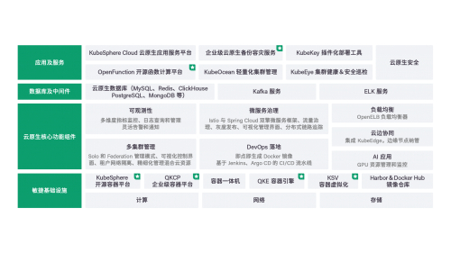 在青云科技(qingcloud.com,股票代码:688316)多年自主研发、开源协作基础上,青云云原生已经形成了包括“敏捷基础设施、云原生核心功能组件、数据库及中间件、应用及服务”的完整云原生产品家族,能够满足企业多样化的云原生产品需求。
