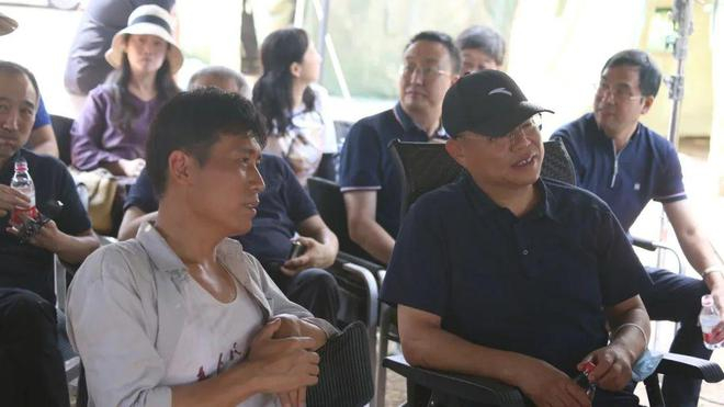 一下车,薛继军便来到监视器前,观看了一场演员们的精彩表演。监视器的另一端,是剧中赵书和与柳大满的饰演者——李乃文与胡明在村支部办公室的一场室内戏。无论是演员的着装,还是室内的布景,无一不在彰显着这部戏所追求的“接地气”与“真实”。