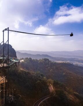 悬崖项目的极大化,奥陶纪在原有项目上,增加了高空自行车等项目,步步惊魂搞了不少新玩法景区,悬崖蹦极也安排上了,这在抖音上也挺火的。