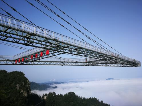 时光倒回到八年前,奥陶纪景区只是重庆万盛喀斯特地形中的一个风景区,2017年,奥陶纪创吉尼斯世界纪录的悬挑玻璃走廊横空出世,这座70米的悬挑玻璃走廊,在五年前对游客来说还是相当有吸引力的——玻璃桥,那个时候还是新生事物。