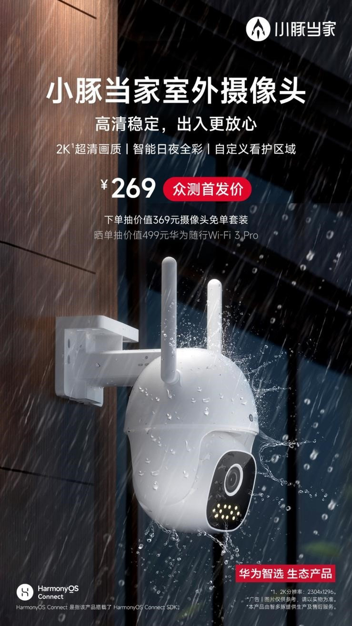 小豚当家作为华为智选优秀的生态伙伴,专注研发和生产以音视频采集、AI智能服务多项核心技术为主的视觉智能硬件产品。从安防类IPC布局到人工智能的“眼睛”,这款功能齐全、便捷操作、物超所值的小豚室外摄像头可以说再一次刷新了行业标准。众测价格269元的到手价颇具竞争力,相信这款产品将会带来新一轮高清摄像机普及风潮。