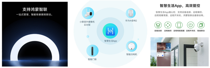 从软件到硬件, 华为智选生态产品始终重视用户体验。小豚当家室外摄像新品全面接入华为智能全新的交互方式,所有的智能产品,一个智慧生活App就搞定。比如联动华为智能门锁,当我们离家时候,即可开启离家模式,此时摄像头自动打开,为家护航。