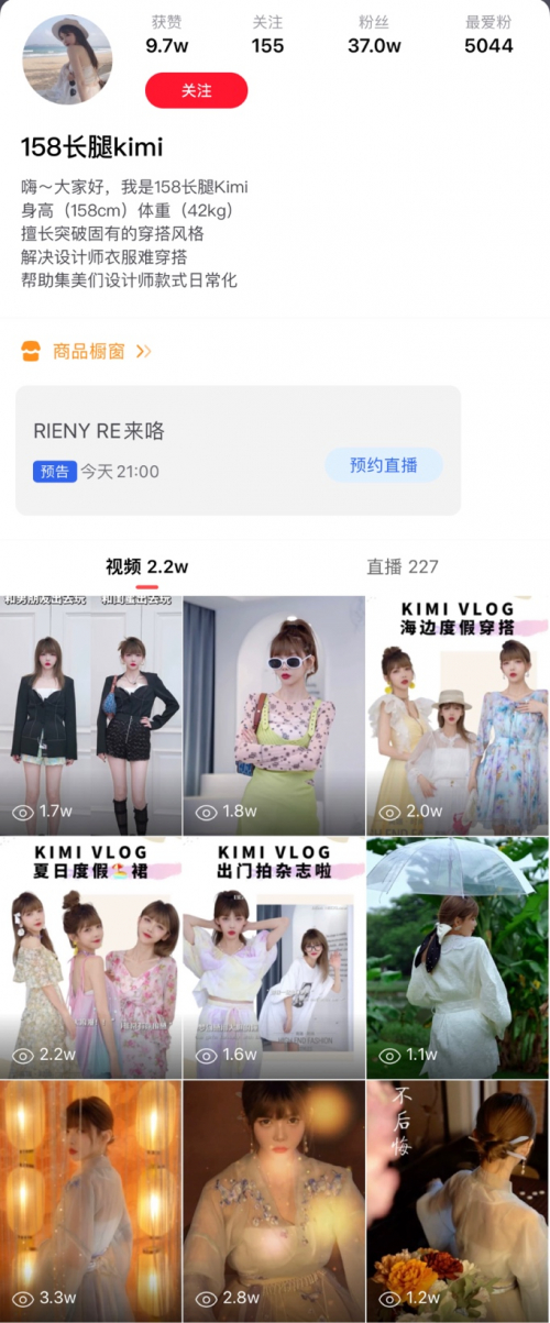 现在已经拥有多条爆款视频的梵维机构旗下主播“158长腿kimi”说起开始孵化短视频账号的时期,也会感到困难。而现在,Kimi直播间的短视频流量占到直播流量的10%,爆款视频观看量超80万。