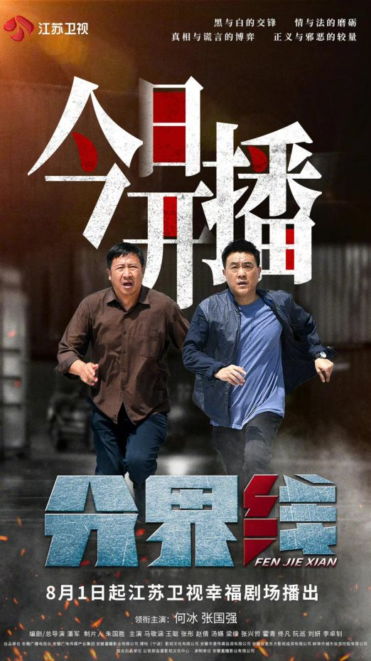 当代现实题材电视剧《分界线》已于8月1日19:30在江苏卫视幸福剧场与广大观众见面。该剧由何冰、张国强,以及新生代演员刘妍领衔主演。根据作家潘军原创小说《犯罪嫌疑人》改编,由潘军本人担任编剧和导演。强大的演员阵容和贴近生活的题材也使此剧的开播吸引了不少观众的注意。