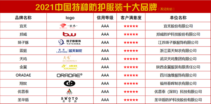 招投标供应链品牌推介平台作为全国招投标领域领先的品牌推介服务平台,一直致力于服务供应商品牌化发展,倡导品牌消费采购,扩大“自主品牌”在采购市场和消费市场的知名度、美誉度及影响力。于近期举办了以“绿色创新——定义品牌新生态”为主题的“2021中国服装招标采购评价推介”活动,从众多服装品牌供应商中甄选出具有高品质、诚信、研发设计能力与服务能力较强,综合实力突出的“2021中国特种防护服装十大品牌”供应商,加以大力宣传推介,树立品牌标杆,展示品牌良好形象,发挥品牌引领带动作用,为广大需求采购单位和社会各界提供参考。具体如下: