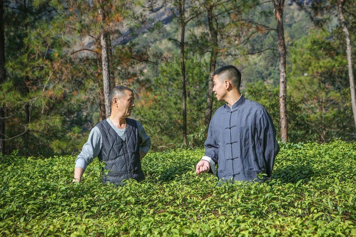 *武夷岩茶第五代传承人余清命与第七代传承人余韵涵(从左往右)