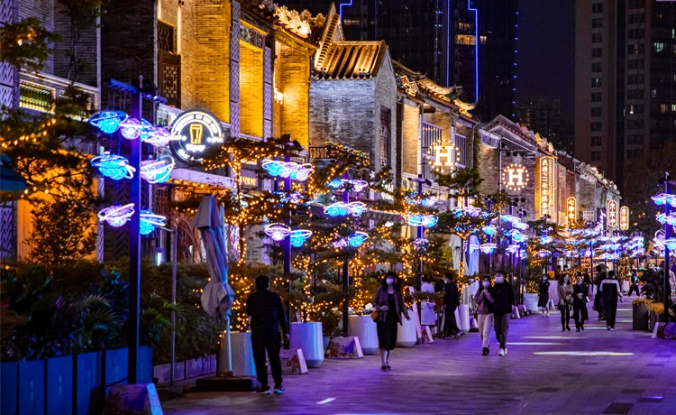 除两栋写字楼塔楼外,合利天德广场商业配套有行政公馆、岭南风情街、休闲娱乐及首条载人级自动驾驶空中观光航线。经过前两年的运营打造,传统美食文化、创意料理、跨界饮食、娱乐潮牌汇聚于此,加上“天德潮会玩”、“天德脱单节”、“天德潮炫pop-up季”、“七夕微醺夜”等借势营销活动的火爆出圈,合利天德广场紧贴发展“夜经济”战略,已经成为“最聚年轻人”的24小时商业娱乐社交中心。