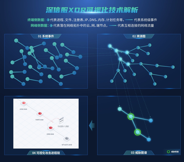 得益于可视化技术,深信服XDR是攻防对抗场景中的一把利剑,直接刺向“敌人的心脏”。