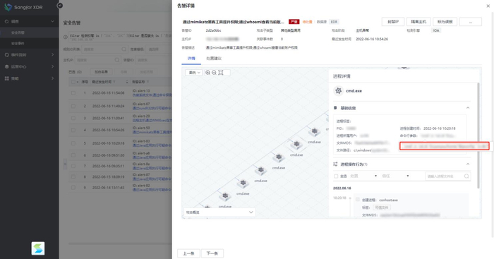 △深信服SaaS XDR可视化攻击链界面展示告警详情
