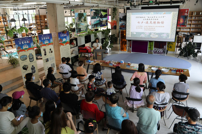 活动中,北京民俗博物馆带着馆藏的“七夕”文物和传统文化活动走进在首创郎园station良阅城市书房,北京民俗博物馆民俗专家贾娟结合文物给园区白领们上了一堂“七夕民俗讲座”,详细讲述了“七夕”节的历史演变和民间习俗。马蜂窝的达人则做了“全国各地都有哪些七夕传统民俗”的主题分享,并进行有奖问答。