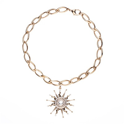 施华洛世奇水钻和坚韧的黄铜铸成的饰品,如太阳一般散发着耀眼光芒,面对任何场合也要闪亮和无畏