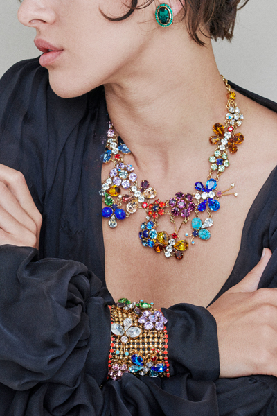 其中,将随意拾掇的路边无名花卉,和跃然而上的蝴蝶点缀其中,诞生了氤氲着彩色光辉的系列首饰。