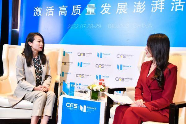 (中粮信托公司总监兼金融市场部总经理、固收业务部总经理李春艳(左一)现场接受采访)
