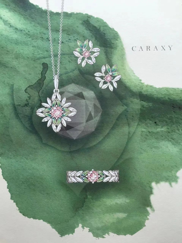 此前,已有市场调查研究数据显示,人们愿意为可持续产品买单,消费者开始用感同身受和身份认同,来链接与消费品的文化认同感和归属感。而CARAXY的产品设计以绿色和自然元素为主基调,灵活运用鲜花,藤曼,蝴蝶等动植物元素,就是希望传达可持续的环保理念,呼吁并提倡绿色珠宝。