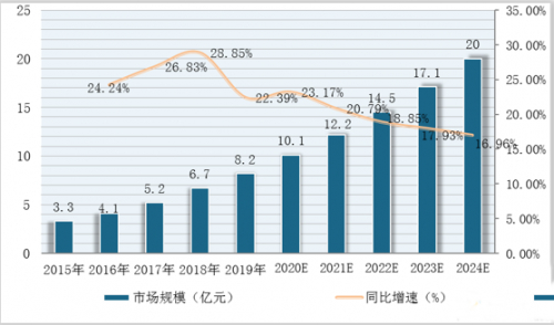 2015-2024年我国IVD原料市场规模预测