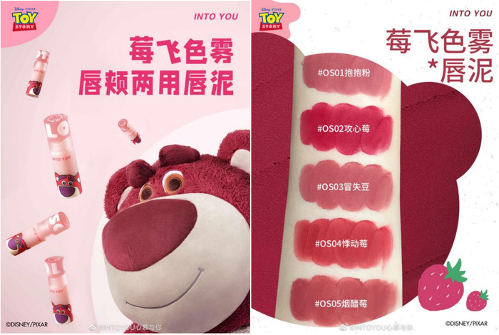 INTO YOU皮克斯草莓熊系列是此前INTO YOU心慕与你携手迪士尼推出的全新彩妆系列,该系列上市之初就凭借草莓熊ip的火热与INTO YOU品牌的自有声量持续吸引着Z世代们的注意力,一度卖到断货。除了鞠婧祎上唇的OS05烟醋莓之外,草莓熊唇泥OS02攻心莓和OS04悸动莓也是各大平台竞相分享的“爆火”色号。