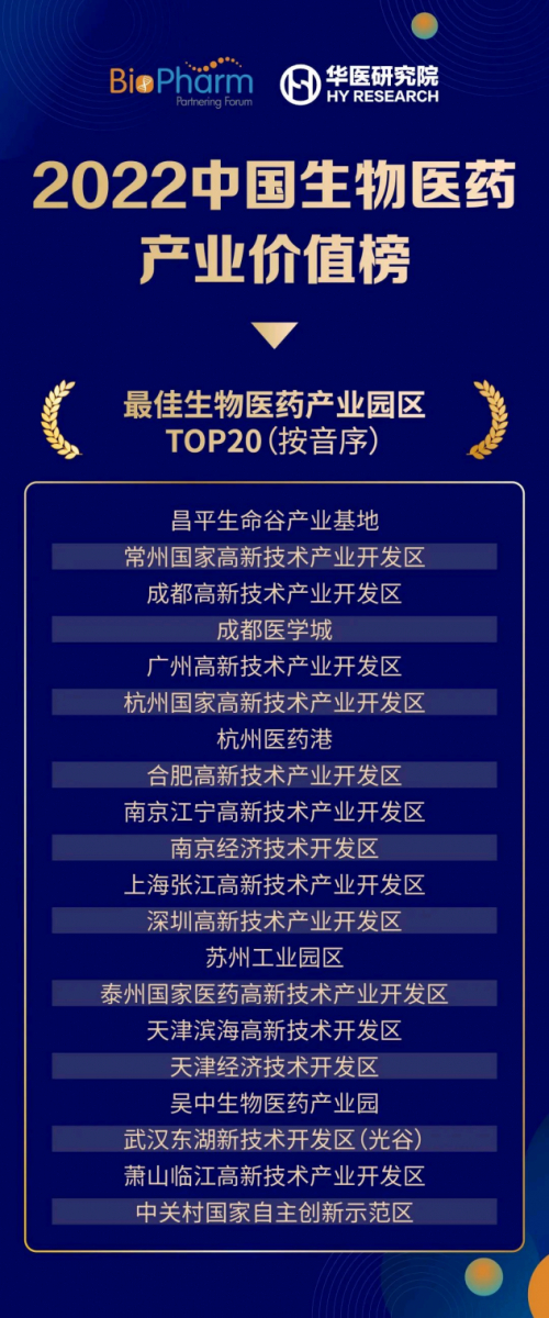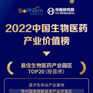 近日, 2022第六届中国生物医药创新合作大会(BIO-PHARM2022)在苏州举办,大会上2022中国生物医药产业价值榜发布,CHAMPIONBIO昌平生命谷产业基地入选最佳生物医药产业园区TOP20。