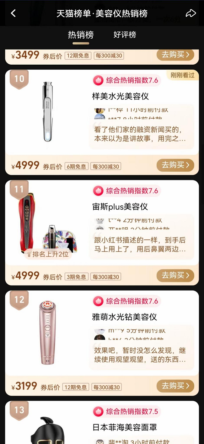 据悉,样美的「超水光」美容仪(家用)结合0号基础时空水光原液,首发淘系上架仅2个月就冲入了平台美容仪大类销售榜前10、家用水光仪类目第1,作为高端价位的国货美容仪,日常销量也超越了宙斯、雅萌等国际品牌,ROI及复购率高于行业均值3倍,可谓势如破竹。