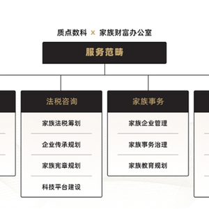 对比外资投行和商业银行,质点数科更为了解本地的企业文化、政策制度和其他各类需求,并拥有众多外部顶级合作资源,可为超高净值家庭和人士提供多样化的传承服务,包括税务规划、家族事务管理及法律咨询、企业管理咨询、子女教育规划、公益慈善规划等综合服务。