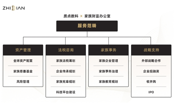 未来,质点数科家族办公室将以财富永续为核心,以“投资”与“服务”为两翼,整合相关优质产业资源,打造财富管理生态闭环,为客户提供专业的一站式财富管理服务,真正完成从“创富”向“守富”以及“传富”过渡。