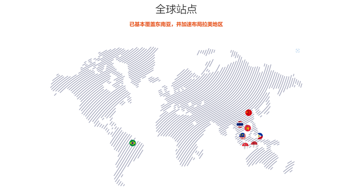 「业务布局」页面,针对Jet Commerce全球运营各大站点分布、六大核心服务能力,诠释Jet Commerce服务优势,浏览者可以快速触达所需服务信息。点击“全球站点”中各国站点文字或图片即可访对应国家官网(泰国站点需连接VPN),新加坡、巴西站点后期也将陆续上线。
