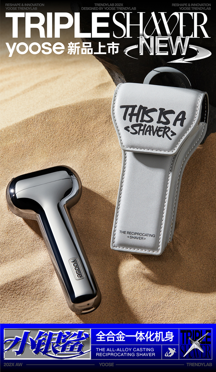 随着Z世代人群涌入消费市场,yoose有色除了对设计升级以外,也不断精进着旗下的产品。在近期发布的一款小银鲨合金往复式剃须刀产品中,更是采用了革新性全合金机身、一体化结构剃须刀,立体柔角,流畅腰线;并且配备最少拆件,共振更低,让用户收获更好降噪效果的个护体验。
