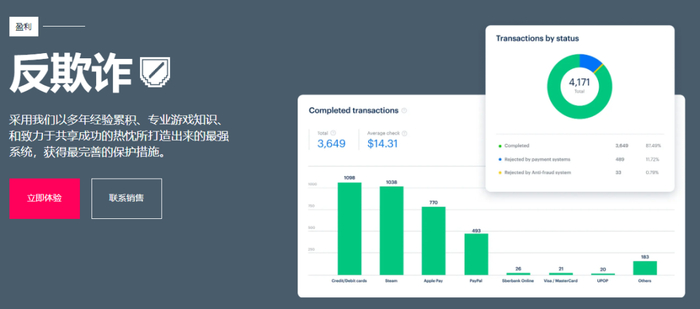 据陈京波介绍,Xsolla的“反欺诈系统”一直都是业内最完善的系统之一,完全可以依托技术优势将游戏“退款率”降到最低。并且目前Xsolla在为全球1800个游戏提供服务的过程中,每分钟最高会触发4000万笔交易,就算部分产品发生了偶然性的问题,支付渠道不会轻易关闭Xsolla的服务,这对厂商来说是十分重要的一项“支付保护”机制。
