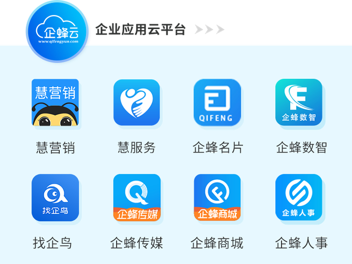 2020年,企蜂也进一步加强与阿里巴巴等合作,上线了企业应用云平台“企蜂云”,应用系统范围也从营销系统扩展到了客服系统、人事招聘、协同办公等新领域,从而打造成为集营销服务、推广引流、品牌宣传、智能办公、业务协同、企业人事等功能于一身的企业一站式数智化运营服务商。