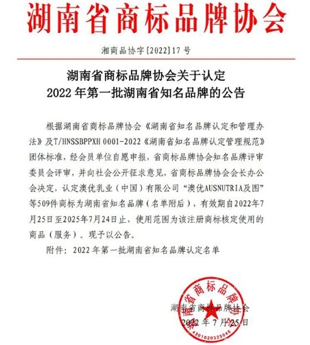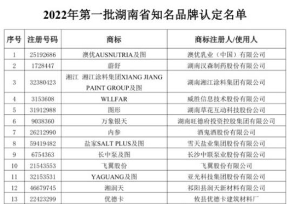 日前,由湖南省商标品牌协会发布的2022年第一批湖南省知名品牌认定名单,通过评选委员会评审,并向社会公开征集意见,再由省商标品牌协会甄别认定后正式公布,来自各行各业的头部品牌纷纷入榜,其中包括长沙银行、澳优乳业、酒鬼酒内参、俏妃等知名商标品牌。