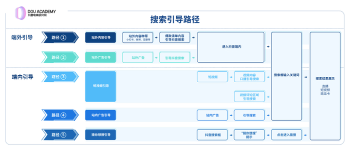 搜索是用户接触品牌进行消费的入口,搜索行为结束后,品牌需要有场域承接用户流量,此时直播、商城、店铺都是有效途径。 而如何安排,则要看品牌调动资源的能力。