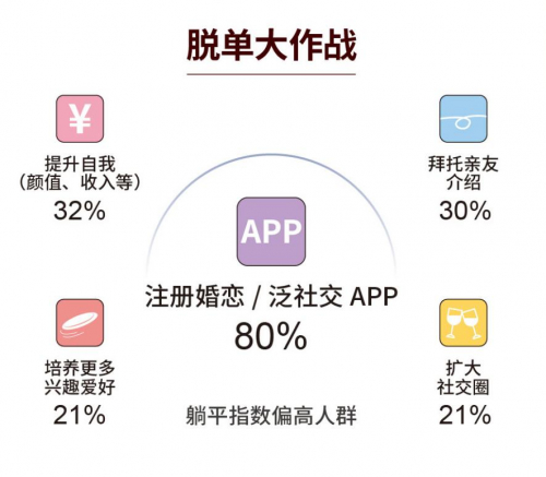 与以往发布内容不同的是,此次报告聚焦在了目前社会上热点讨论的“躺平式恋爱”问题上,通过对于用户样本的分析,从“守株待兔”式脱单、脱单躺平了吗?和单身们的恋爱憧憬三个方面全面分析和研究了目前单身人群在渴望爱情的同时,又该如何摆脱“困境”进行全方位的解读和探讨。通过不同维度的数据,我们不难看出:所谓的“脱单难”和“等上门”,虽然透露出单身人群的困境,但究其原因,又折射出了目前单身人群的困惑和无助。
