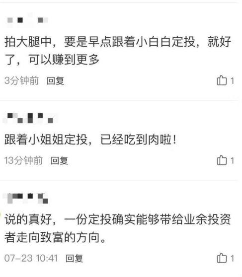 7月以来,A股反弹行情暂缓,再次进入调整震荡阶段,部分投资者受大盘影响难免出现举棋不定的心理。近日,记者发现不少投资者另辟蹊径,跟随基金经理“定投团”热潮在震荡市着手进行基金定投。第三方基金销售平台支付宝显示,截至目前,“华夏定投团”小程序获得超千万次访问,35000+人创建“跟团投”。震荡市场中,这种专业基金经理领投的模式开始奏效。记者看到,不少用户对定投团较为认可,在基金评论区“定投打卡”,直言“坚持就是胜利”。