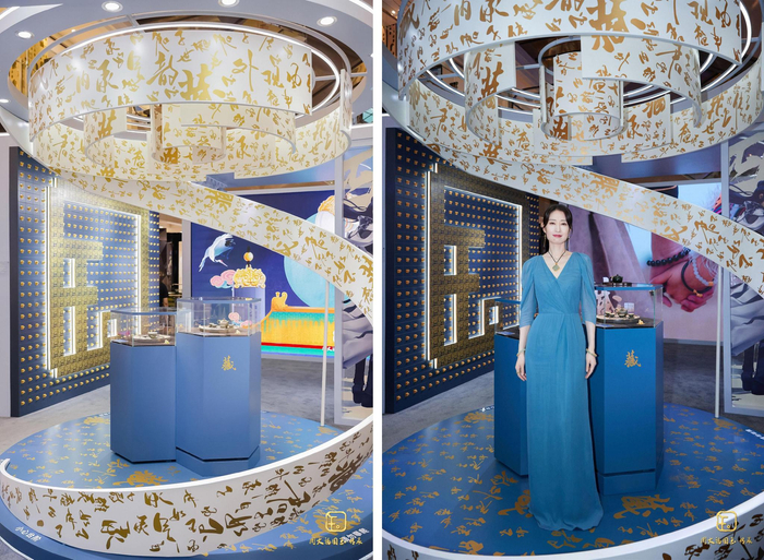 本次新品发布是以古韵古香的情景剧贯穿演绎「国玉·传承」之美,从定情、嫁娶、贺喜、亲缘等多维度、多场景地演绎了玉器由古至今不变的文化内涵与贵重,同时在沉浸式体验的情景中首发亮相新品宣传片之故事卷轴篇与「国玉·传承」溯源概念大片,让观众体验和田美玉的温润细腻与匠心技艺巧妙的同时,又更深层次感受「国玉·传承」的内蕴故事。