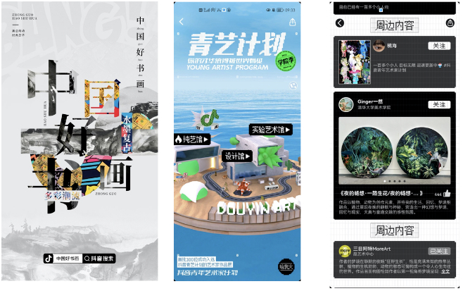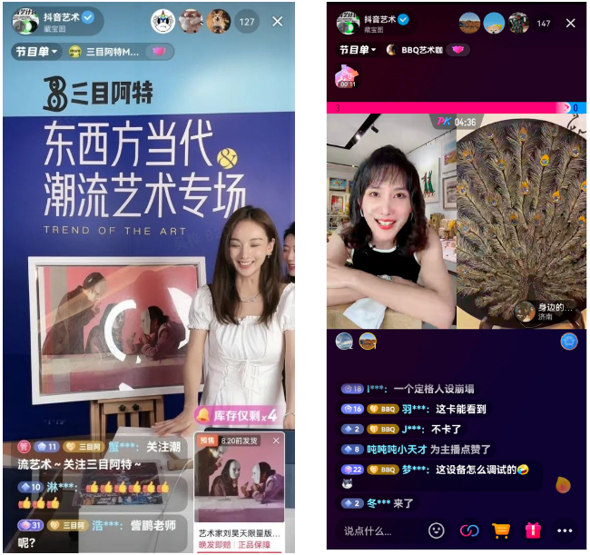 “没有艺术的时代,只有时代的艺术”,“抖音大量的年轻用户、多元丰富的展现技术、高互动性的创作者——观众关系,非常适合书画、收藏等艺术品和艺术家生长。”一位参与活动的机构负责人分享道。