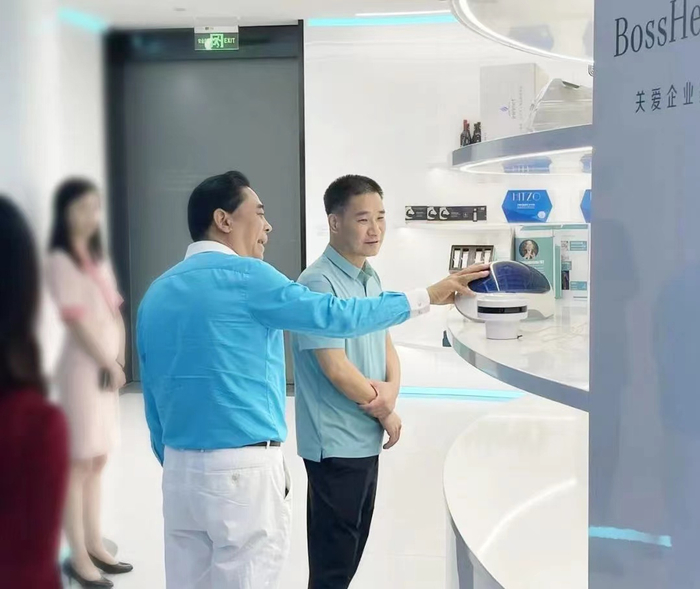 天九共享集团董事局主席卢俊卿与木林森股份董事长孙清焕参观展厅