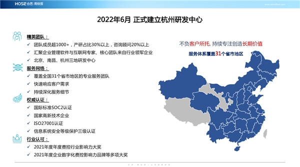 在马春荃看来,杭州是合思·易快报布局费控报销研发体系的重要组成部分之一。就在今年6月,合思·易快报杭州研发中心正式落地,至此,合思·易快报在全国范围内已实现三大研发中心联动布局——分别是位于北京的总部研发中心、南昌分部研发中心及杭州分部研发中心。