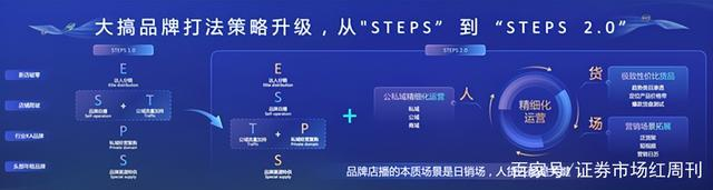 基于认知升级,张一鹏宣布升级品牌经营方法论STEPS 2.0。相较于STEPS1.0,STEPS2.0更强调“品牌自播”与“达人分销”结合,“公域流量加持”与“私域经营复购”结合,以及重视货维度选品策略。与此同时,再整体匹配“人货场”精细化运营,即公私域精细化运营、提供极致性价比货品、拓展营销场景等。