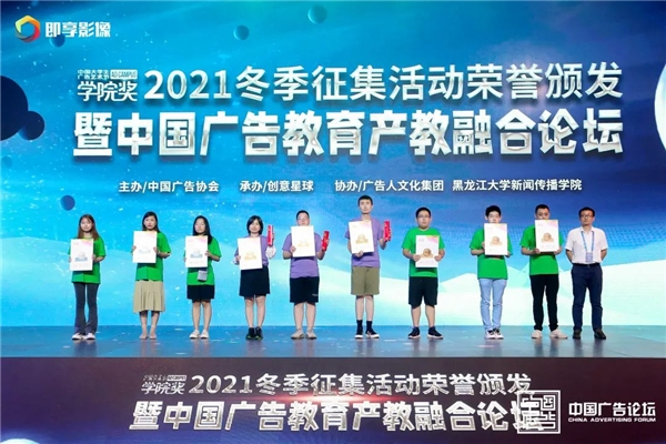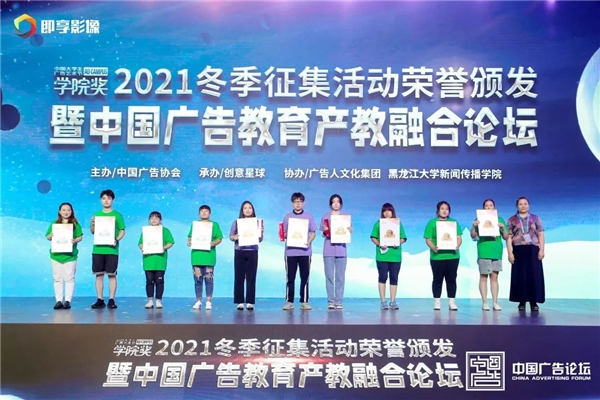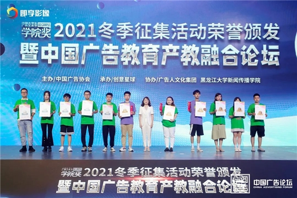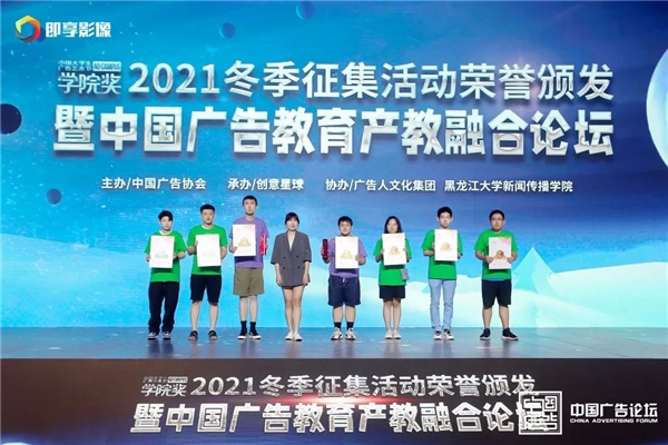 随着荣誉的一一揭晓,大广节学院奖2021冬季征集活动荣誉颁发暨中国广告教育产教融合论坛在青春梦想与创意的交响中圆满结束。“稻花香里说丰年,听取蛙声一片。”青春创意的嘹亮之声响彻在初秋气息渐浓的冰城,谱奏出中国青年创新之力的高亢乐曲,映照出广告文化产业的丰年。