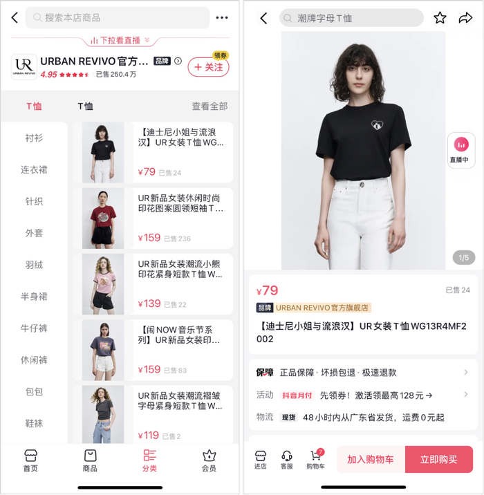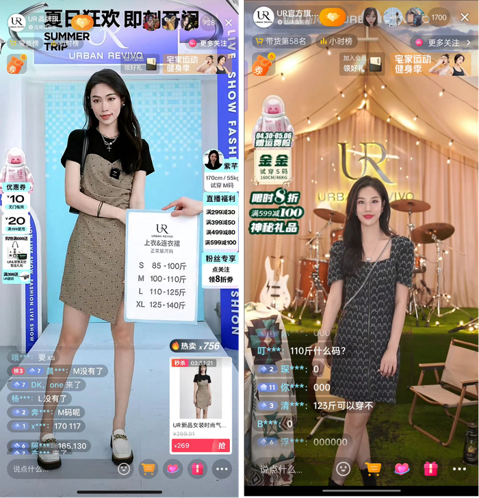 多元化、丰富的货品也能有效提升用户在搜索环节的效率。今年,UR将抖音商城的货盘和线下打通,最大化铺设货品,覆盖不同类型的用户搜索需求。基于庞大的货盘,UR打造账号矩阵,对不同店铺的直播间和短视频内容进行差异化风格打造,如温柔甜美风、甜酷风、通勤风、休闲风等,精准触达和转化不同风格偏好的用户。