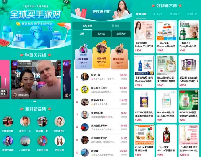 以「全球买手派对」活动为例,围绕#海外生活 这一场景,撬动@糖妈糖包在美国、@澳洲杨姐等海外优质达人参加短视频创作及溯源专场直播,并以发布榜单的形式聚合全球品质好物、潜力海外品牌商家,在「沉浸式」跨境购物体验中塑造品牌认知。活动期间,#海外生活 累计曝光量10亿+, 围绕话题所产出的优质内容,为用户和商品之间架起了一座桥梁,也帮助品牌快速打通升级“商品种草-引导转化-品牌认知”的链路。