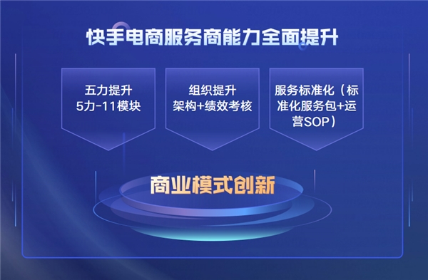 这些高速增长的数据背后是快手电商服务商服务能力的全面升级,不仅从去年的“五力模型”升级到“11模块”,在组织能力和服务的标准化方面,快手电商均对服务商提出了新的要求。