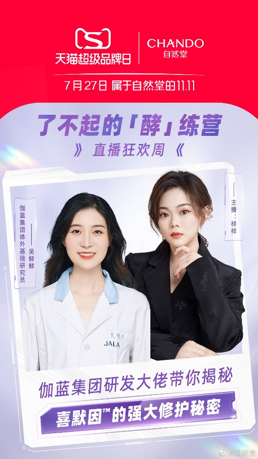 活动期间,随着自然堂天猫旗舰店二楼“了不起的‘酵’练营”正式上线,以自然堂天猫旗舰店直播间为核心阵地,自然堂天猫超级品牌日邀请多位美妆博主、成分大师以及研发大咖,从产品种草到科技护肤体验,再结合福利放送多维夯实短视频种草+直播内容矩阵,自然堂打造了“了不起的‘酵’练营直播狂欢周。
