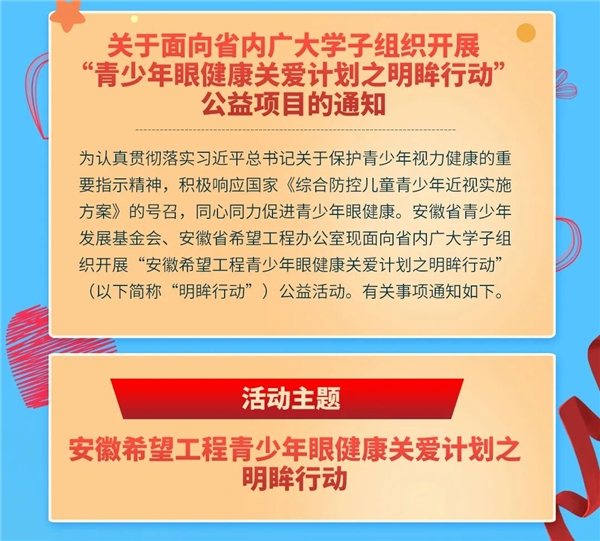 省内广大有近视矫正需求的学生可以踊跃报名参加“明眸行动”。