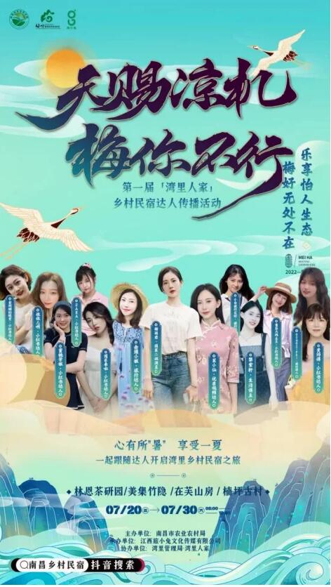 为推进南昌乡村民宿高质量发展助力乡村振兴,南昌市农村农业局于7月20日至30日举办了第一届乡村民宿达人传播活动,口号“天赐凉机,梅你不行”吸引众多游客前往打卡。