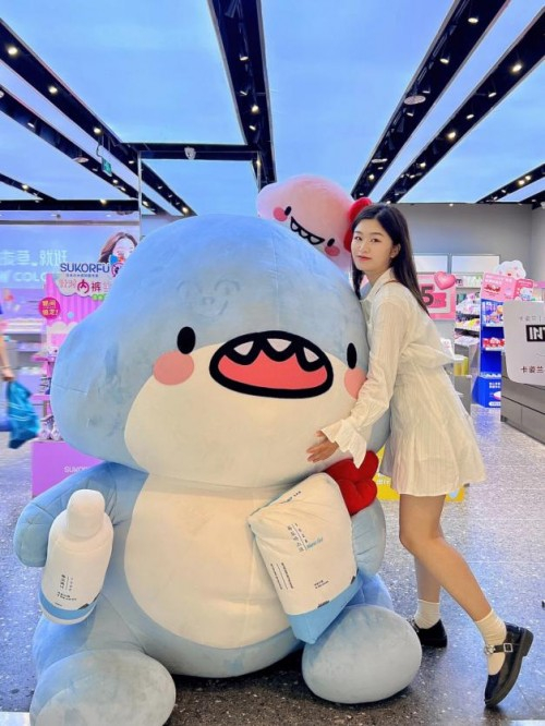 除此之外,在现场的「贴贴系列」互动体验上也花足心思,七夕礼袋、鲜花、微信定制红包封面,还有100%中奖的扭蛋机,浪漫之余童趣十足,超千份象征爱情美满的精美赠品,包括桃花御守、情侣杯、钥匙扣等等,这些小心思在七夕这个时间点上,诠释出了对于爱情的美好愿景,其中最引人瞩目的则是高达近2米,手持产品的巨型肥肥鲨玩偶,可爱吸睛造型让人直呼太萌了,大小朋友们的合影热情高涨。